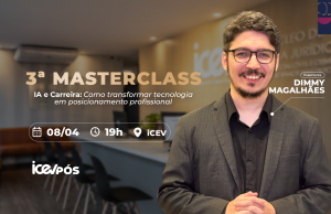 Diante desse cenário, o iCEV promove a Masterclass com o tema “IA e carreira: como transformar tecnologia em posicionamento profissional”, uma aula prática com o Prof. Dr. Dimmy Magalhães, referência na área de IA aplicada. A aula será realizada no dia 08 de abril, às 19h, no iCEV.